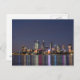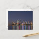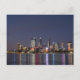 Cartão que caracteriza uma foto da skyline da cidade de Perth na noite, com reflexões coloridas no rio da cisne, Austrália Ocidental.