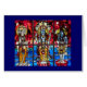 Este poster é uma reprodução da janela de vitral da trindade projetada e criada para a casa de Bikram Choudhury. É compor de três painéis do vitral - senhor Brahma, senhor Vishnu, e senhor Shiva.
