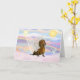 Um Dachshund marrom tenta suas asas entre as nuvens do céu antes que elas sejam livres para entrar na Ponte do Arco-íris onde anjos e amigos aguardam.l