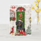 Cachorro Dachshund sentado fora de casa decorada com coroa de Natal, árvore de Natal é uma ótima ideia de presente de Natal para amantes de cães.