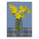 Vaso alegre de daffodils amarelos em um pano azul marcado Adicione suas próprias palavras para personalizar