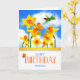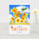 Daffodils alegres com um colibri que aprecia o jardim feito dentro profundamente - as matiz amarelas, alaranjadas e verdes fazem um cartão de aniversário bonito quando você personaliza a parte dianteira com o nome do receptor.