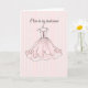 convide seus melhores amigos a ser damas de honra com este cartão feminino bonito que caracteriza um vestido do rosa do flouncy!