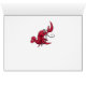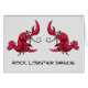 Desenhos animados engraçados que dançam a lagosta vermelha com o pincher da garra levantado. Opção para adicionar ou mudar o texto: Dança da lagosta