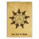 Nove corvos vivos (Corvus corax) circulam em torno de um anel Nórdico/Celta. Um triquetra, figura triangular de três arcos entrelaçados, aparece no centro. Tudo é sobreposto a uma imagem antiga de fundo de papel, dando-lhe uma sensação medieval. Personalize adicionando seu próprio texto.