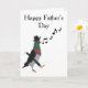Este cartão de dia do Pai, incomum, editável, minha imagem de desenho animado de um pombo-canalha vestindo um chapéu, assobiando uma melodia feliz e carregando um guarda-chuva. A legenda principal diz "Feliz Dia do Pai" e dentro "Para Pai com muito amor."
