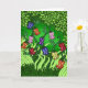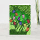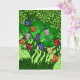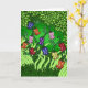 Um cartão com as flores campaniformes coloridas em um fundo gramíneo frondoso verde.