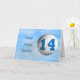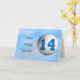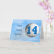 Um cartão de diversão excelente para um golfista ou uma ocasião de golfe. Uma bola de golfe voando através do ar com 14 escritos.