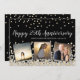 Design de cartaz de aniversário de casamento personalizado elegante com ouro cintilante e confete prateado sobre fundo negro, tipografia moderna com as palavras "Feliz 25 Aniversário" e três de suas fotos favoritas emolduradas em folha de prata metálica na frente do cartão juntamente com sua mensagem e fechando atrás.