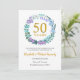 Este cartão de anúncio de "Save the Date" para o 50º aniversário de casamento apresenta uma delicada grinalda de flora e folhagens feita de campainhas azuis, plantas e flores de lilás. Pode ser facilmente personalizado com as informações especiais da renovação de votos de ouro. O verso do convite apresenta as datas de aniversário em texto branco elegante sobre o fundo dourado.