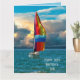 veleiro com coluna arco-íris em água azul e fundo do céu de verão no aniversário