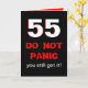 Este engraçado cartão de aniversário de 55 anos para homens é perfeito para aquele aniversário milestone. Um grande número de 55 sentou-se acima das palavras "NÃO ENTRE EM PÂNICO ainda o tens". O segredo para o engraçado e o "it" é dentro do cartão. Este é um cartão de aniversário maravilhoso para o homem com bom senso de humor no seu 55º. Copyright Kathy Henis