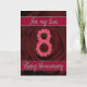 cartão de 8º aniversário com rosas e folhas