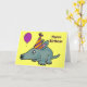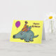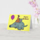 Um desenho animado e engraçado, aardvark, vestindo um chapéu de aniversário com um cartão de aniversário feliz de balão, diz: Tenha um dentro de dia muito especial.