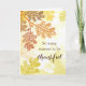 Cartão de saudação mostrado com uma bela impressão de folhas e bolotas de outono e uma saudação de Ação de Graças dentro.
