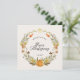 Cartão de Ação de Graças de outono Moderno Verde e Amarelo. Em um estilo aquarela com folhas de outono, abóboras e os tipos de ferramentas que você pode encontrar durante uma caminhada através de uma floresta.
