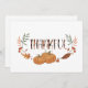 Cartão de saudação de ação de graças com a palavra "Obrigado" em xadrez de laranja fofa com folhas de outono e abóboras. Adicione sua própria mensagem ao fundo.