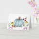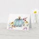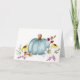 O cartão é uma impressão de uma pintura de aquarela desenhada à mão de abóboras, videiras e flores, mostrando as cores da estação de outono. Ótimo para desejar a alguém um feliz Dia de Ação de Graças ou para celebrar a estação de outono. Em branco por dentro com muito espaço para você incluir seus próprios sentimentos.