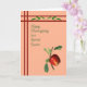 Cartão de Ação de Graças para seu primo com uma ilustração de uma maçã vermelha, e duas bordas em vermelho profundo com fundo de pêssego. Obrigados para cortes Design para ilustração da maçã.