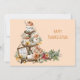 Cartão de Ação de Graças Russo com uma bandeja de vestidos de outono com canecas de café, palitos de especiarias, abóboras e folhagem.
