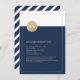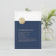 Design minimalista moderno dourado e azul-marinho com cartão de acomodação monograma de círculo de cor de folha dourada falsa, chique e simples, ótimo para casamento moderno, casamento de verão ou casamento náutico. A cor do fundo pode ser alterada para combinar com o tema do seu casamento.