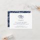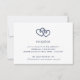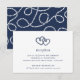 Cartão de acompanhamento de recepção de casamento com estilo costeiro romântico apresenta os detalhes da sua recepção (horário, local e endereço) em azul-marinho clássico, encimado por um par de corações de corda náutica enlaçados em azul-marinho.