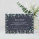 Projetado para combinar com nossa coleção de casamento Winter Sage, este elegante cartão de acompanhamento de recepção de casamento com ilustrações botânicas apresenta folhagens e vegetação desenhadas à mão em aquarela em branco, emoldurando os detalhes da recepção, horário, local e endereço. Um fundo azul-marinho profundo e rico adiciona contraste e um visual luxuoso para casamentos de inverno.