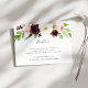 Projetado para combinar com nossa coleção de casamento Blush Romance, este elegante cartão de acompanhamento de recepção com flores em aquarela apresenta um spray de flores cor-de-rosa, marfim e marsala burgundy no topo dos detalhes da recepção de casamento, local e horário. Ramalhetes de folhagem botânica verde completam o visual