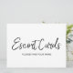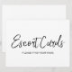Um letreiro estiloso com letras à mão "Cartões de acompanhante, por favor encontre seu nome"