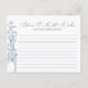 Tornar os chás de panela inesquecíveis com as placas de conselho de noiva floral francesa Blue Chinoiserie. Com florais azuis e brancos impressionantes, esses cartões permitem aos hóspedes compartilhar sabedoria sincera com noivas a serem. Os motivos antigos adicionam encanto sofisticado como amigos que caneta suas palavras amorosas de conselho. Estas manobras de noiva serão tesadas durante anos, lembrando a noiva do apoio que a rodeia. Para noivas que adoram o romance do eterno, esses cartões de conselho florais elevam chás de panela com suas elegantes matizes azuis francesas. Seus estilos de chinoiserie antigos fazem da coleta de palavras de sabedoria um assunto a ser lembrado.