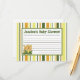 Essas adoráveis placas de conselho graváveis são a adição perfeita a qualquer chá de fraldas ou festa de aniversário. Basta entregar estas cartas aos seus convidados, juntamente com canetas Sharpie de ponta fina. Seus hóspedes podem anotar qualquer conselho que tenham para a nova mamãe ser ou para o aniversariante ou para a garota. Estas são impressas com tamanho de 4,25" x 5,6" no estoque de cobrir ultra-pesado brilhante de 120 lb (estoque do cartão). Temos uma linha inteira dedicada a este design aqui na nossa loja zazzle sob a guia do menu *Comprar por TEMA para incluir convites (5x7), Etiquetas de Devolução, Etiquetas de Correio, Selinhas de Envelope, Carimbos de Popales, Picadas de Bolo de Taça, Enroladores de Garrafa de Água, 1,55 oz de Hershey. Amplos Bares, Autocolantes de Hershey, Molhadoras de Microondas, Cartões de Fogo, Cartões de Lugar Escrevíveis, Tópicos de Bag Goody, Cartões de Agradecimento FLAT (4x5), Cartões de Agradecimento (4x5), Cartões de Favor, Cartões de Meninos, Cobrir de Lollipop, Marcadores, Cartões de Bingo, Cartões, Bingo, Marcadores de Cartão, Folhas de Chamada de Cartão Bingo, Cartões de Aviso Escritíveis (4x5), etc.