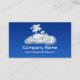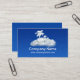 o cartão de visita azul do conceito bonito para o viagem vacations agência ou agente. Nuble-se no céu e na silhueta da praia nela: cadeira de praia, palma, guarda-chuva…