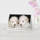 Fotografia de aproximação de dois filhotes que se recuperam de ouros, aparentemente confiantes uns nos outros, usada para ilustrar o cartão "Adeus", "Não se perderá"