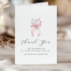 Elegante arco rosa acentuado com flores silvestres cor-de-rosa e azuis decoram este cartões de agradecimentos de aniversário. A caligrafia clássica te obrigado. Três linhas de texto permitem personalizar um obrigado que você declara e seu nome.