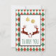 Um Cartões de agradecimentos de Natal personalizado nas costas. Projetado com uma ilustração de 2 cervos de Natal saltando. Os cervejeiros são feitos de xadrez vermelha e preta, com um pouco de coração entre eles. Dourada (faux) decoração de natal brilhante pendura de cima. O fundo é um padrão de estilo vermelho e verde.