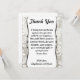 Esses adoráveis cartões de agradecimento planos 4x5 são perfeitos para agradecer aos seus convidados pelos presentes que trouxeram, ou simplesmente pela companhia no seu evento. Perfeito para um casamento ou festa de noivado! Eles são completamente personalizáveis e o poema pode ser removido completamente, simplesmente excluindo o texto para dar espaço a uma mensagem pessoal manuscrita, ou você pode personalizar com seu próprio poema ou texto. São impressos em papel liso, vibrante, mate de 110lb. Contêm 50% de conteúdo reciclado. Perfeito para seus convites mais formais, cartões de agradecimento e anúncios de eventos. Eles vêm com envelopes brancos padrão.