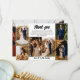 Cartões de agradecimentos de casamento você pode personalizar com sete de suas próprias fotos românticas de casamento, seis de um lado e um grande do outro. Obrigado por estar escrito em um retrorreflector de tendências a preto contra um fundo branco. Adicione seus nomes e uma nota de agradecimento pessoal (ou exclua-a para escrever algo manualmente). Cartões de agradecimentos de casamento de colagem de fotos impresso com suas fotos favoritas de casamento em uma colagem assimétrica ao seu redor obrigado, seus nomes e uma nota curta impressa de agradecimento.