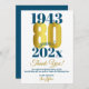 Um cartões de agradecimentos de festa de 80 ousado e surpreendente. Este cartão especial de aniversário de um marco consiste no nascimento e data de aniversário em tipografia azul - com os 80 realçados em letra de efeito ouro. Adicione uma mensagem para um obrigado de presente de festa personalizado.