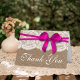 A coleção rústica de arco rosa é uma design com um adorável fundo de efeito rupestre rústico com um trecho romântico de efeito de renda branca vintage, terminado com uma fita rosa escura e espantosa com arco. Essas cartas podem ser personalizadas para sua ocasião especial e fariam o cartões de agradecimentos perfeito para qualquer casamento, chá de panela, festa de noivado, festa de aniversário e muito, muito mais. *Observe que o Zazzle só vende cartões impressos para que esses cartões de agradecimento não tenham nenhum material real de burlap, renda ou fita.