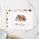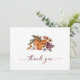 Cartão de Agradecimento Abóbora. Celebre as festividades de outono com abóboras pintadas à mão em aquarela, flores de outono em burgundy e terracota, elementos botânicos em verde floresta e ferrugem, e caligrafia manuscrita em burgundy. Deixe-nos ajudá-lo a tornar seu casamento, chá de panela ou chá de bebê ainda mais especial com um lindo cartão de agradecimento.