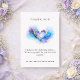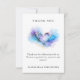 Cartão de agradecimento de casamento moderno abstrato com um coração de aquarela azul, roxo e dourado com textura de tinta álcool elegante. Um design limpo e minimalista perfeito para enviar agradecimentos sinceros após o seu casamento. Personalize facilmente a mensagem e os nomes. Convite e papelaria combinando disponíveis na coleção.