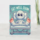 Uma imagem de desenho animado de uma pessoa coberta de bandagens para que você possa apenas ver seus olhos e dedos em tração em uma cama de hospital com a mensagem "Get Good Soon" no topo. Há uma dentro de massagem que você pode mudar.