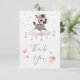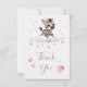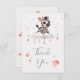 Cute thank you card featuring adorable little female zebra wearing a cute pink bow with some love hearts