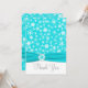 Este cartão de agradecimento festivo com flocos de neve em turquesa e branco tem uma fita azul ÁGUA falsa e medalhão de floco de neve. Ele combina com o convite de casamento mostrado abaixo. Há também um cartão de agradecimento estilo cartão de saudação mostrado abaixo, se preferir. Se você precisar de outros itens correspondentes neste design, envie um e-mail para niteowlstudio@gmail.com.