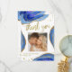 Cartão De Agradecimento Aguarela Geode azul com a foto Wedding do ouro |