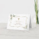 Design de cartão único com cor d'água delicada, folhas verdes e douradas, brancas, flores creme, falso quadro de ouro, sobre fundo branco. Use a ferramenta Personalizar para adicionar suas informações. Para mais visitas, por favor, a minha coleção de celebrações batismo de Natal.
