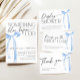 Com este cartões de agradecimentos Chá de panela você tem uma bela maneira de dizer obrigados para todos os presentes e desejos para a futura noiva. Ele foi projetado para uma Festa Hen ou Chá de panela com um tema "Ela é do casando" ou "Algo azul antes de mim" e tem um arco de aquarela desenhado manualmente em azul empoeirado. O convite de correspondência, as placas de compartimento e os sinais também estão disponíveis nesta coleção.