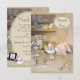 Convites de chá de bebê neutros e encantadores com tema Alice no País das Maravilhas para meninas ou meninos, com uma bela ilustração vintage de Honor Appleton de uma menina lendo um livro. Ela está cercada por livros e os personagens de Alice no País das Maravilhas estão brincando ao seu redor. No verso desses convites mágicos e bonitos há uma elegante moldura impressa com pérolas e renda antiga para você personalizar com os detalhes da sua festa. Há também uma garrafa "beba-me", um bule de chá, um chapéu do Chapeleiro Maluco, um livro de Alice no País das Maravilhas, o gato de Cheshire, um relógio de bolso dourado e uma xícara de chá. Tenho convites "Traga um Livro" correspondentes na minha loja. POR FAVOR, NOTE: Todos os produtos no Zazzle têm imagens impressas planas. Todo o texto é totalmente personalizável para atender às suas necessidades e você pode alterar o