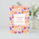 Um cartões de agradecimentos colorido com flores e folhas em negrito