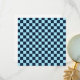 A blue and black checkerboard pattern with evenly spaced squares. The repetitive design creates a sense of symmetry and optical illusion.